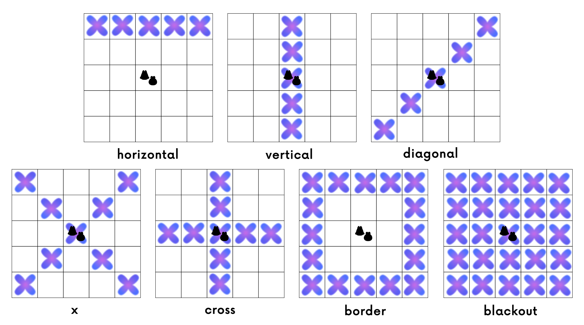 x, cross, and border bingos are worth 15 points